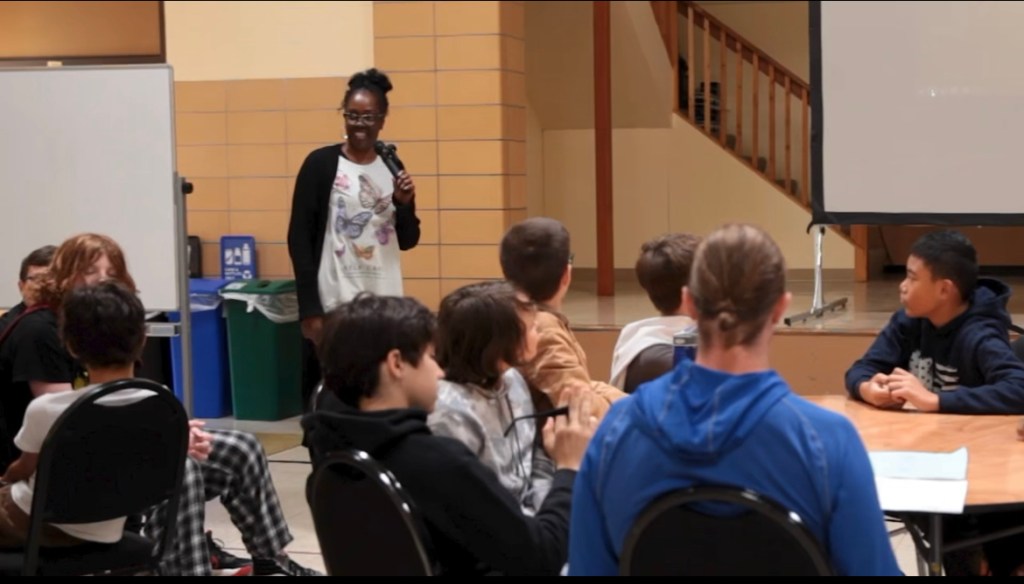 Ms. Diane sharing her wisdom with the 7th-grade boys from Brooks Middle School during the ‘Proteential’ workshop. ![]()