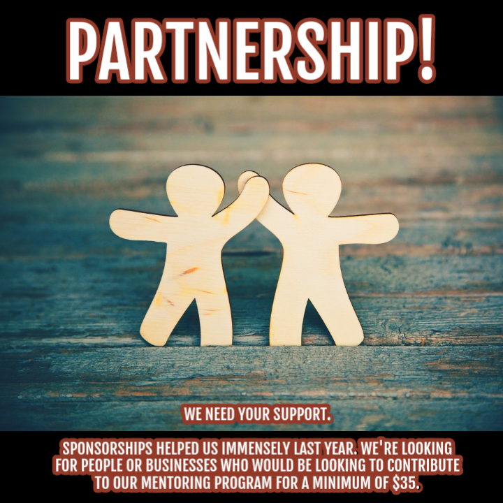 Sponsorships helped us immensely last year. We’re looking for people or businesses who would be looking to contribute to our mentoring program for a minimum of $35.