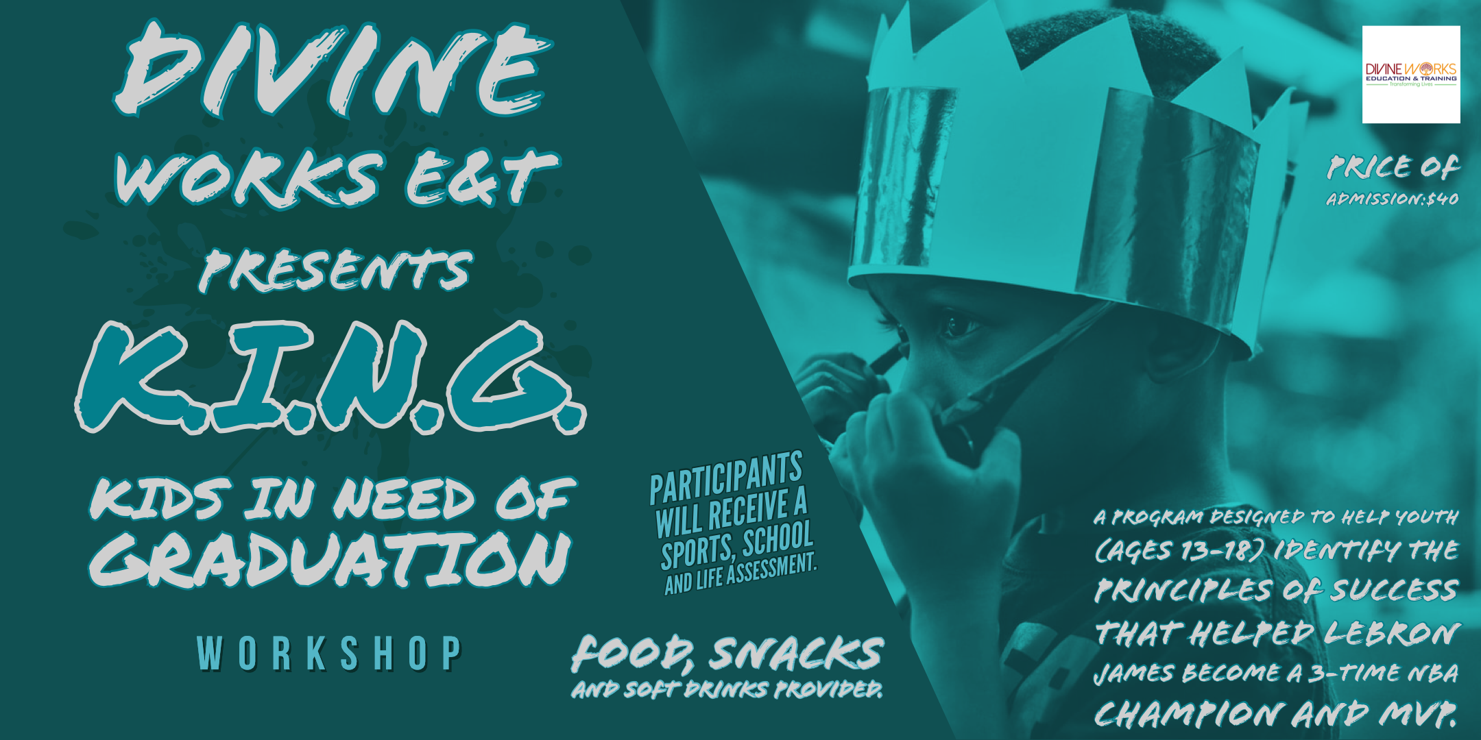 A program designed to help youth identify the success principles that helped Lebron James become a 3-time NBA Champion and MVP. Many teens who are involved in athletics never realize how the INTANGIBLES of a champion cross over from sports to school to life. K.I.N.G. teaches teens how to discover, develop and apply the transferable skills necessary to be successful in all areas of life by engaging them in a transformative experience that includes an analysis of two documentaries based on the Lebron James’s story.